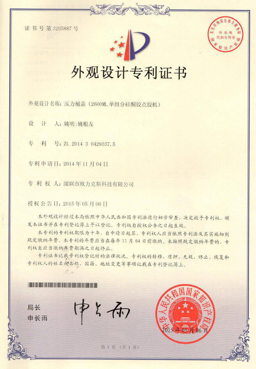 出胶量可调式9.1成人免费看片阀专利证书